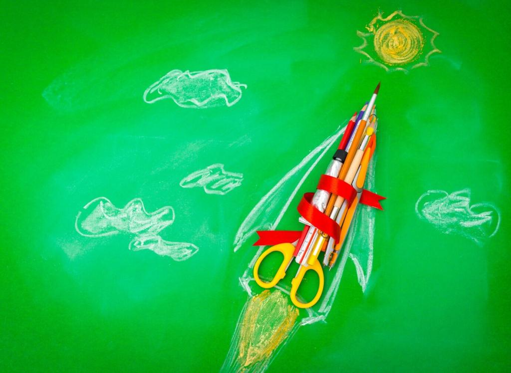 Wähle abgerundete Scheren, überwache Heißkleber, und erkläre, warum wir nur ungiftige Farben nutzen. Kinder lieben klare, einfache Schritte mit sichtbaren Erfolgen. So lernen sie Verantwortung spielerisch. Bitte unsere Community um Tipps für altersgerechte Aufgaben.